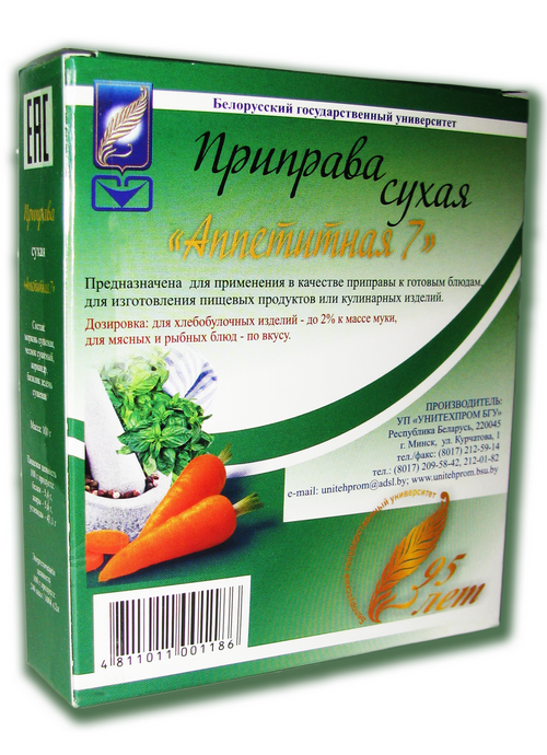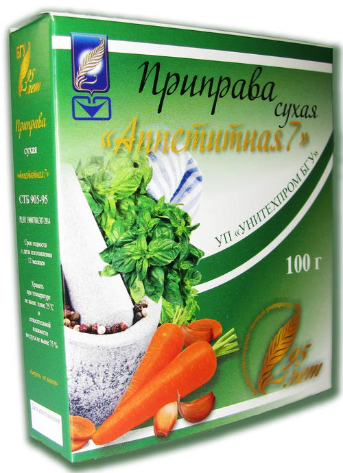Сухие приправы серии "Аппетитная" представляют собой сухие композиции предварительно измельченных или раздробленных сушеных овощей, зелени, пряностей, соли и других ингредиентов.