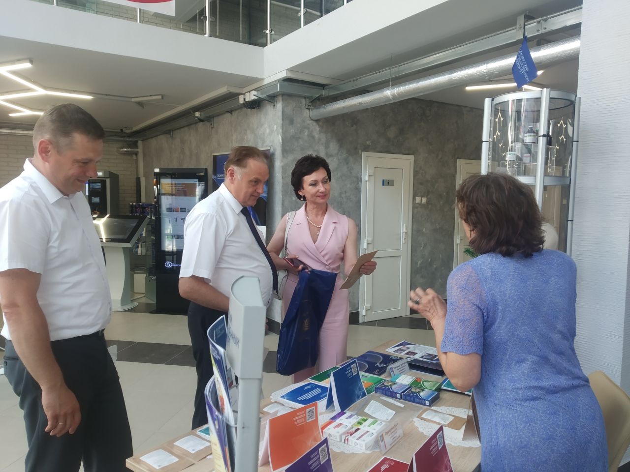 Коллективный стенд посетили министр образования РБ Иванец Андрей Иванович, заместитель министра науки и высшего образования РФ Бочарова Наталья Александровна, заместитель Губернатора Калужской области Потемкин Владимир Васильевич, председатель ГКНТ Шлычков Сергей Владимирович, ректор Ухтинского государственного технического университета Сотникова Ольга Александровна, ректор Гродненского государственного университета им. Я. Купалы Китурко Ирина Фёдоровна.