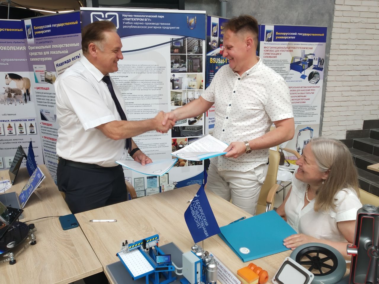В рамках выставки инновационных разработок был подписан договор на выполнение научно-исследовательских работ между УП «УНИТЕХПРОМ БГУ» и Республиканским научно-исследовательским унитарным предприятием «Институт биохимии биологически активных соединений Национальной академии наук Беларуси».