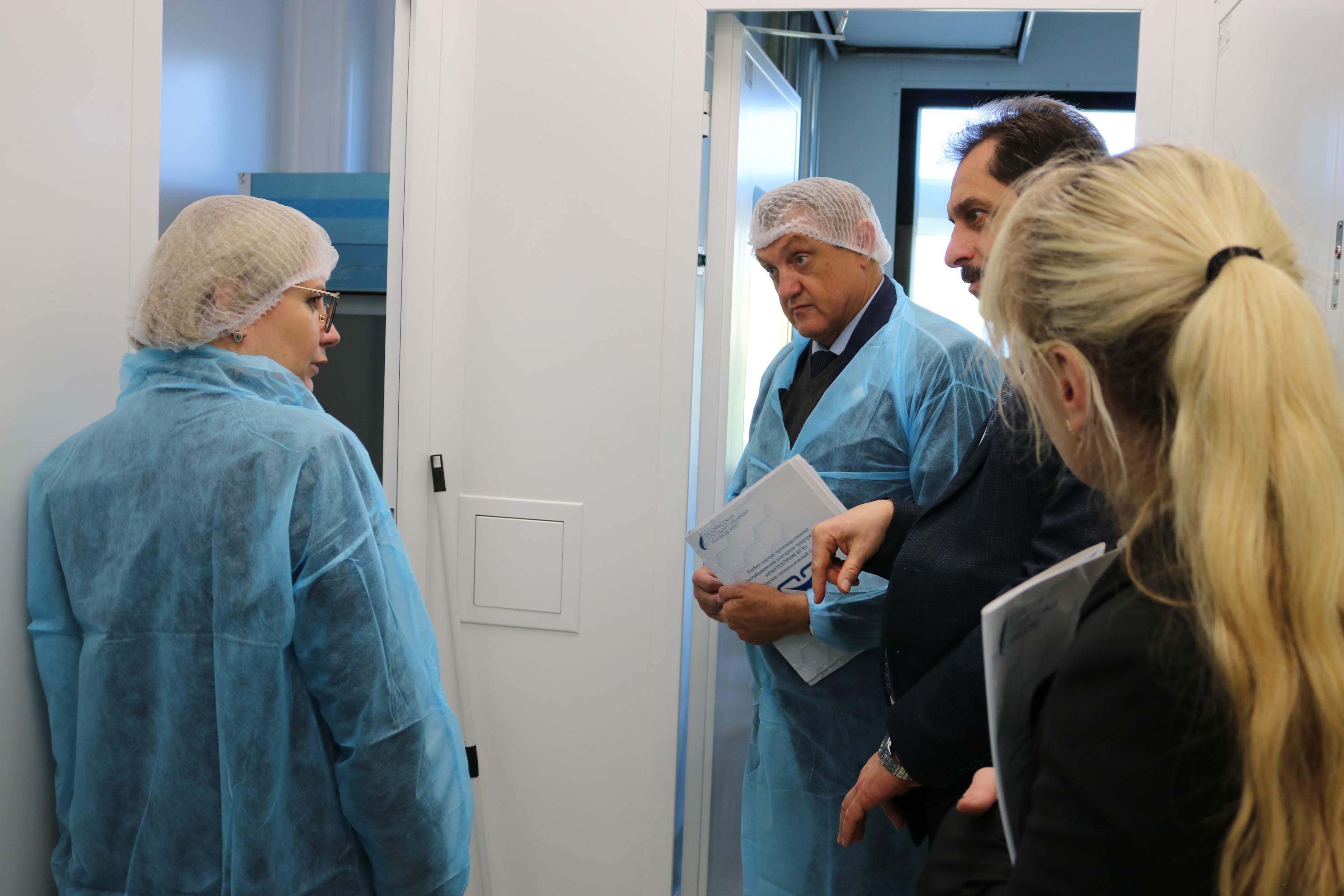 Посетили вновь создаваемое производство оригинальных лекарственных препаратов Антиспайк, фосцелантан и Проспиделонг, разрабатываемых в рамках государственной научно-технической программы с организацией производства в рамках ГПИР РБ, финансируемых за счёт средств республиканского бюджета и инновационного фонда Мингорисполкома.