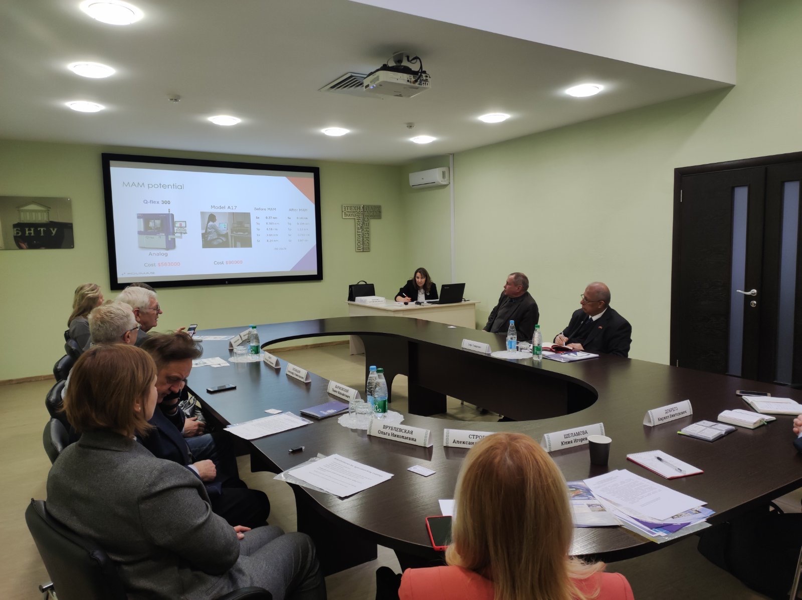 Белорусский государственный университет на переговорах представляли директор УП «УНИТЕХПРОМ БГУ» Бычковский П.М., заместитель начальника ГУН - начальник отдела организации и сопровождения инновационной деятельности Строгова А.С., заместитель директора по научной работе учреждения БГУ «Научно-исследовательский институт физико-химических проблем» Врублевская О.Н. и старший научный сотрудник НИЛ информационно-измерительных систем кафедры информатики и компьютерных систем факультета радиофизики и компьютерных технологий Липницкий А.С.