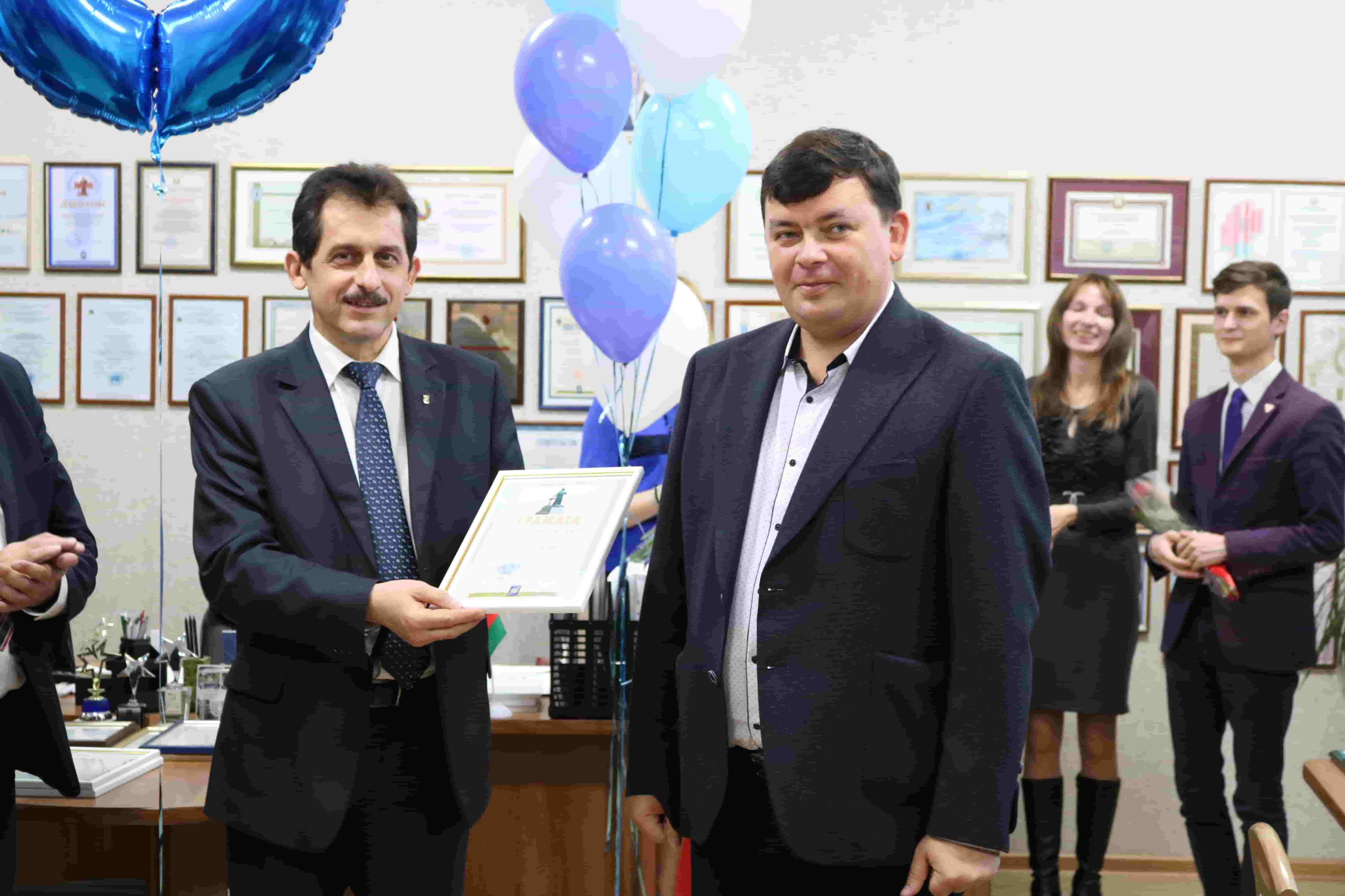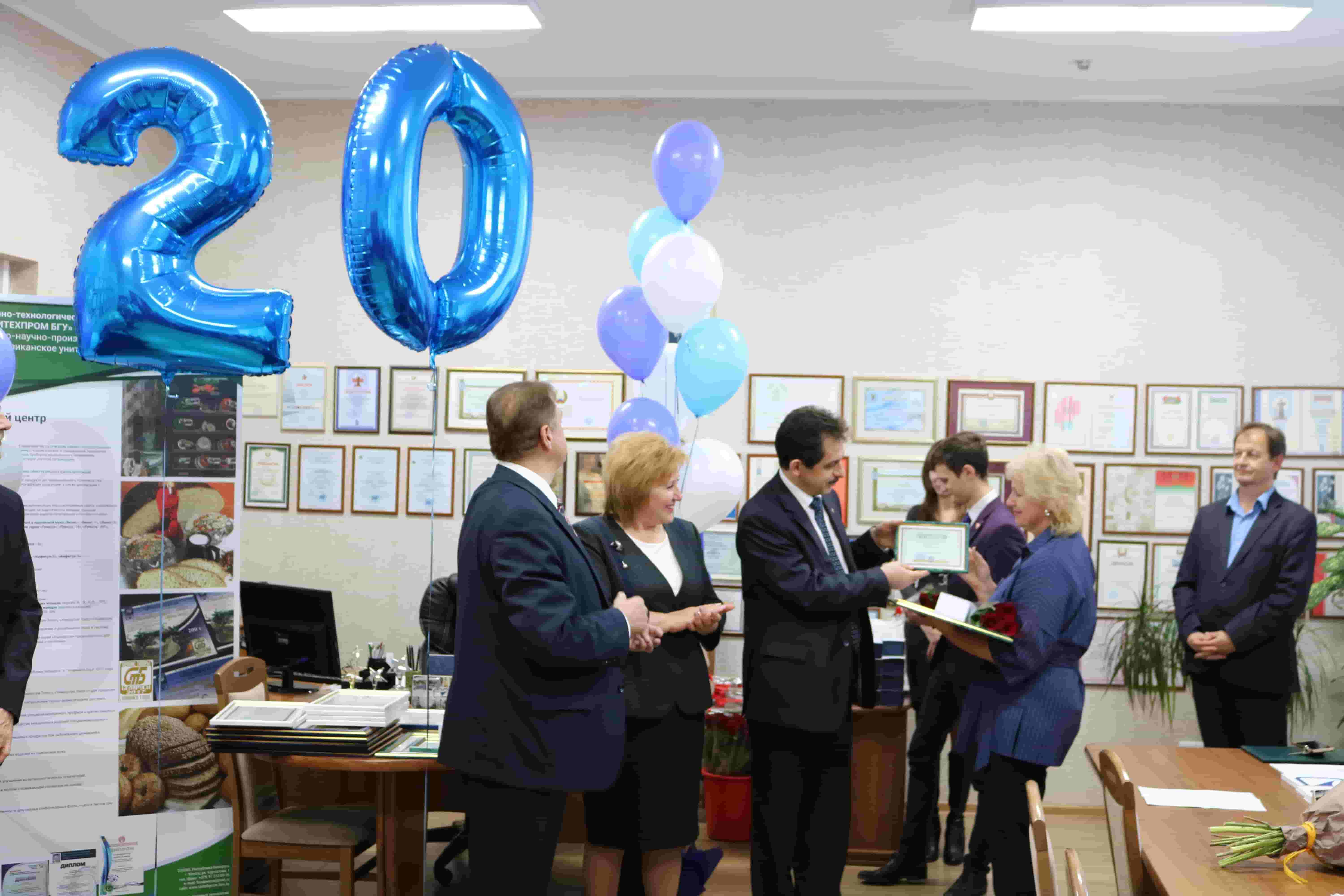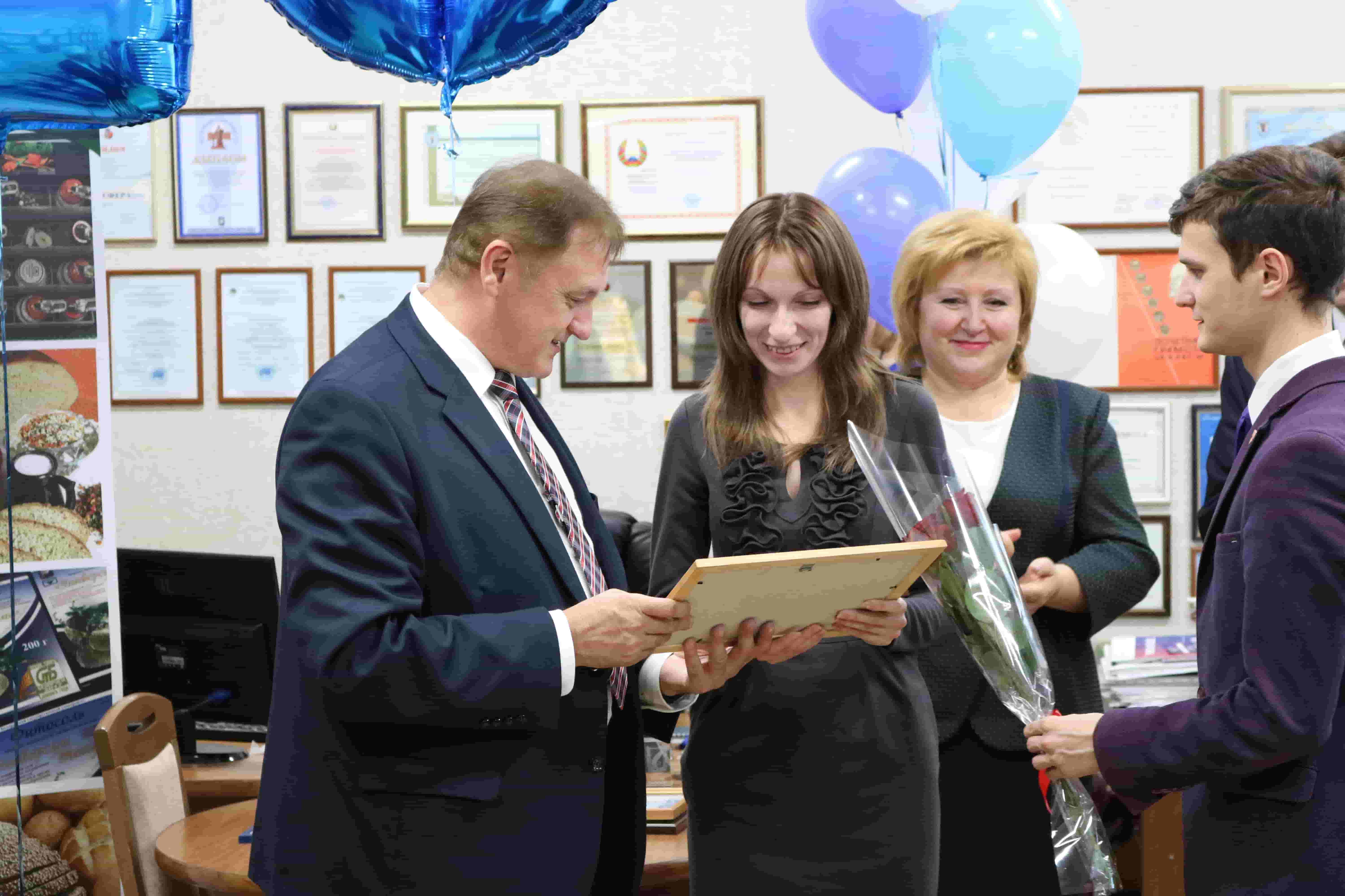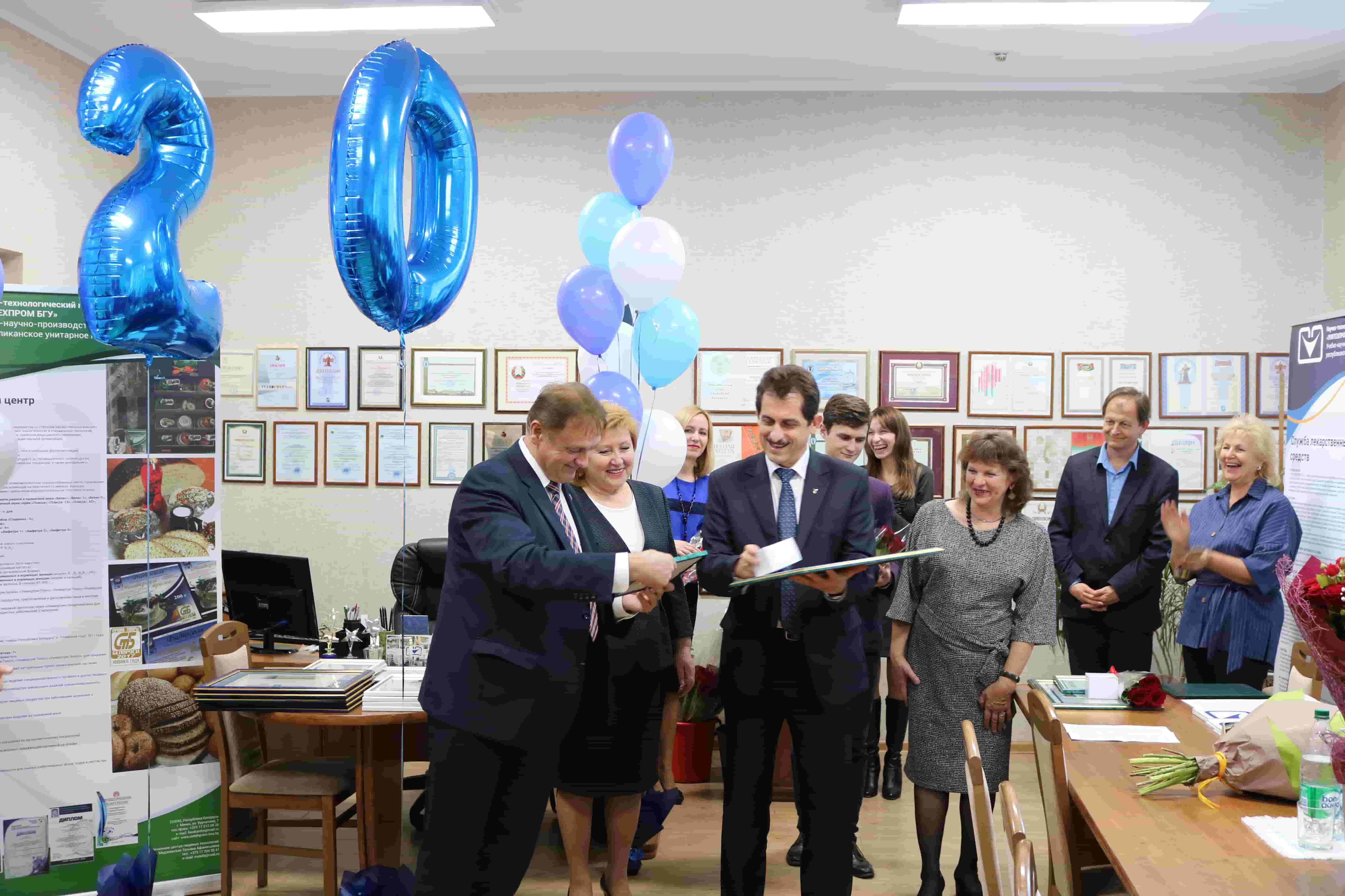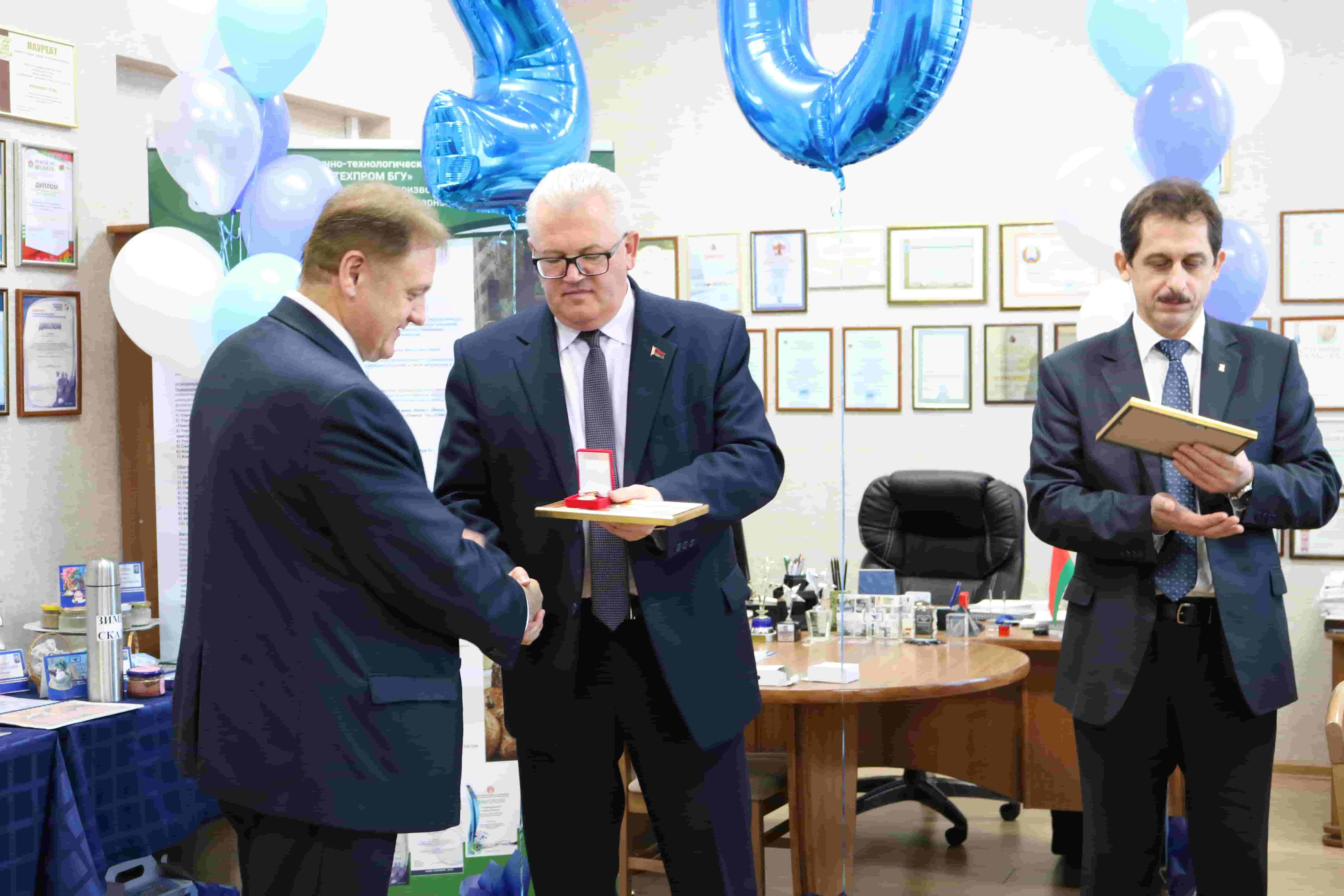 Ознакомились с работой участка прототипирования, производством фармацевтических субстанций и оригинальных лекарственных средств на УП «УНИТЕХПРОМ БГУ». Посетили производственные участки УП «УНИДРАГМЕТ БГУ». Министр образования наградил: почетной грамотой коллектив УП «УНИТЕХПРОМ» «За высокiя i эфекртыўныя дасягненни ў навуковай, навукова-тэхнiчнай i iнавацыйнай сферах i ў сувязи з 20-годдзем з дня заснавання вучэбна-навукова-вытворчага рэспублiканскага ўнiтарнага прадпрыемства «УНIТЭХПРАМ БДУ», нагрудными знаками «Отличник образования» Бычковского Павла Михайловича и Юркштович Татьяну Лукиничну Проведена демонстрация производимой продукции на УП «УНИТЕХПРОМ БГУ» и его резидента НПЦ «ПроБиоТех». Обсудили вопросы деятельности и развития УП «УНИТЕХПРОМ БГУ» со статусом научно-технологического парка, окупаемости созданных производственных участков, реализации инновационной продукции. Министр дал ряд поручений. Предприятие посетила Глава администрации Московского района города Минска Колядко Татьяна Ивановна, ознакомилась с выставочной экспозицией продукции, поздравила коллектив с 20-летием предприятия. Вручение благодарности Председателя Мингорисполкома Ломскому Владимиру Михайловичу От имени БГУ коллектив поздравил проректор по научной работе Сафонов В.Г. и вручил награды сотрудникам УП «УНИТЕХПРОМ БГУ» Директор Бычковский П.М. поздравил коллектив, обьявил благодарности и вручил ценные подарки сотрудникам УП «УНИТЕХПРОМ БГУ».