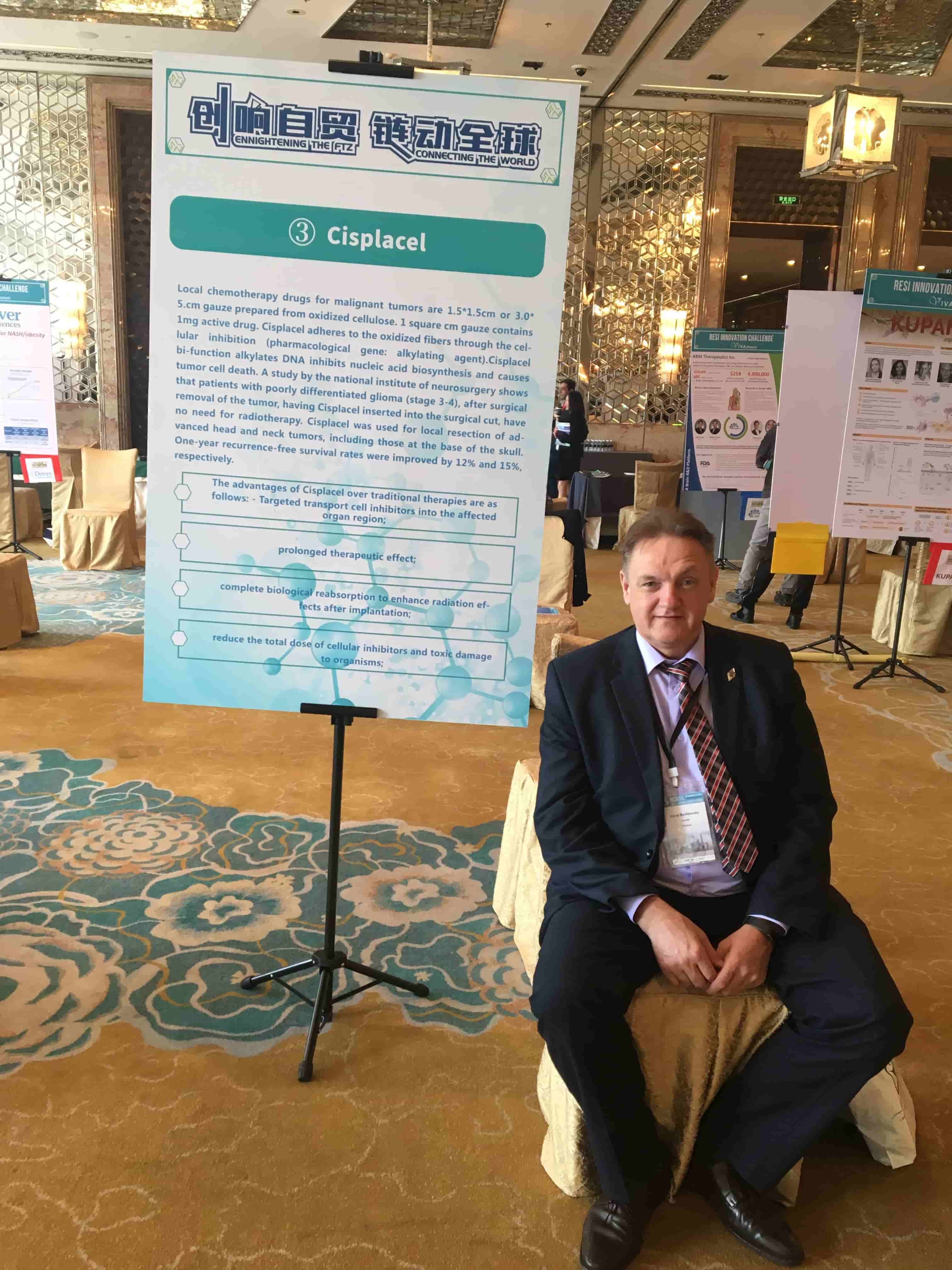 При финансовой поддержке ООО «Управление бизнес-инкубатором «ПУЭ» принял участие в конкурсе инвестиционных проектов REDEFINING EARLY STAGE INFESTMENTS «RESI», November 12, 2019, SHANGHAI, CHINA с проектом «Cisplacel». Обсудил вопросы продвижения лекарственного средства «Цисплацел» с представителями компаний Johnson & Johnson, Chinas Hub of Medical Innovation and Industrialization, Shanghai HiMed Enterprise Management Co., Ltd, WuXi AppTec , MERCK в КНР.