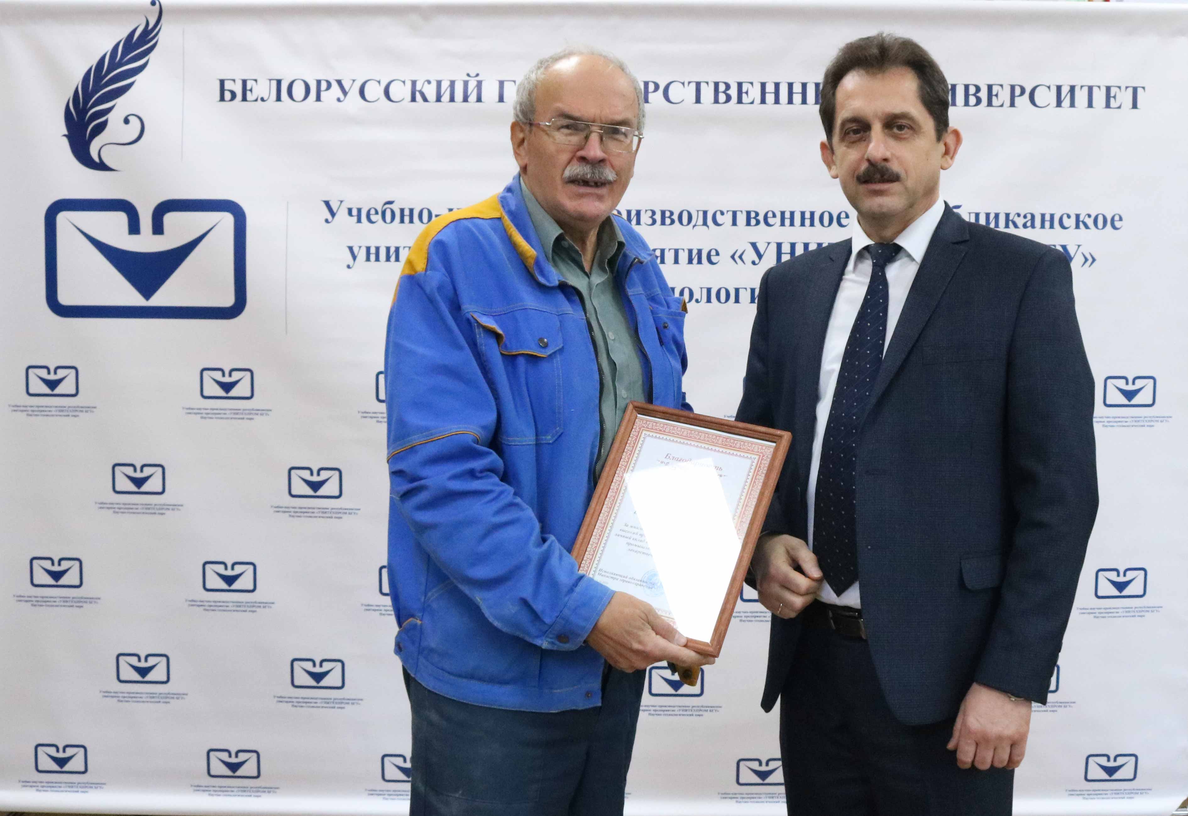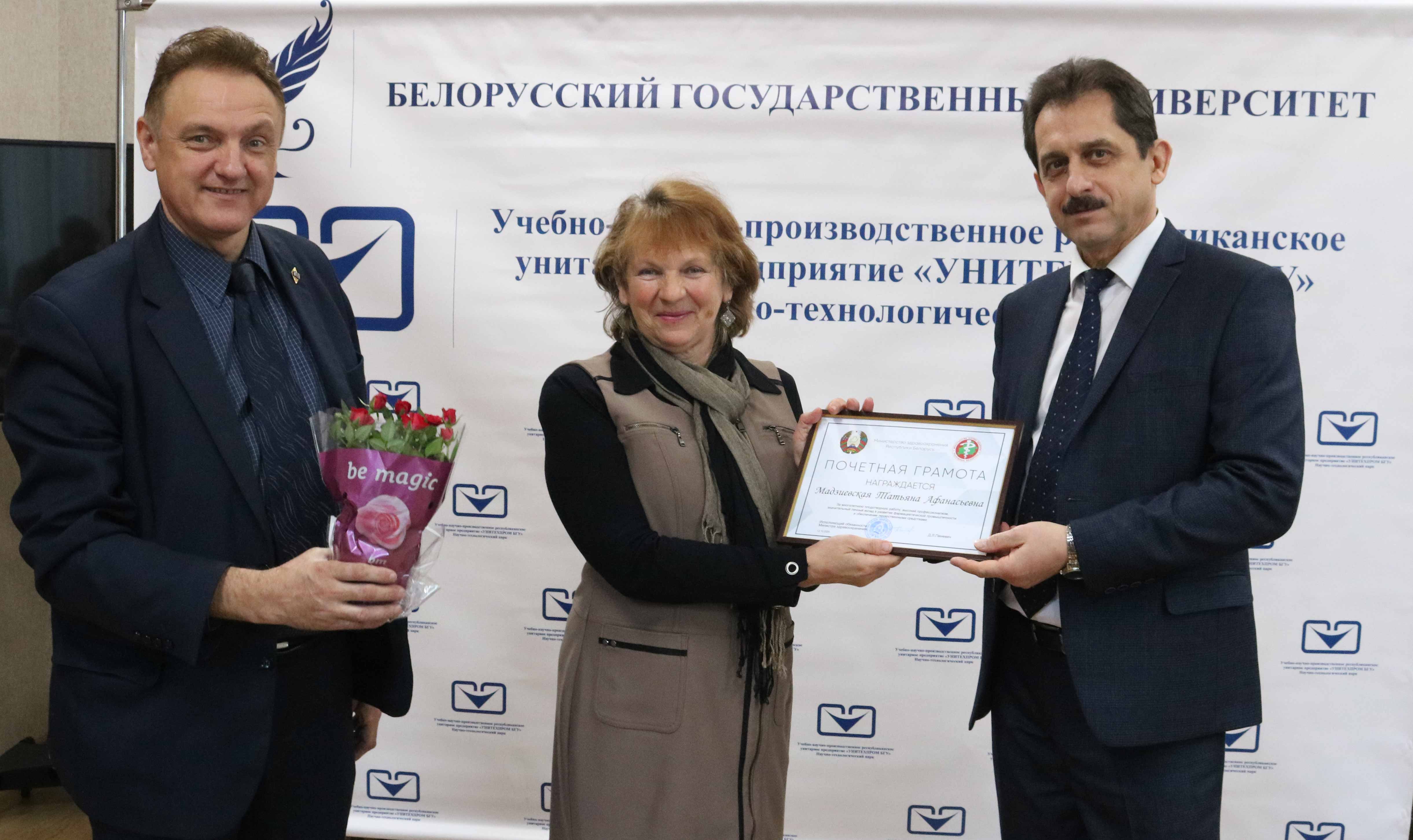 15 октября 2020 года проректор по научной работе БГУ Сафонов В. Г. поздравил коллектив УП «УНИТЕХПРОМ БГУ» НТП с днем работника фармацевтической и микробиологической промышленности и вручил награды следующим сотрудникам: